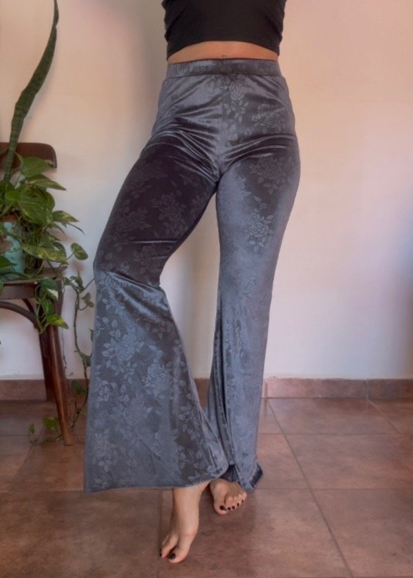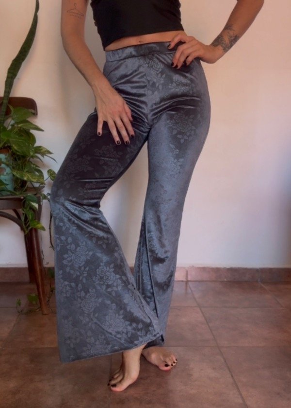 Este increíble y bellísimo pantalón Lidia combina elegancia y comodidad. Confeccionado en chiffon con lycra, ofrece un tacto suave y delicado, resaltado por el sutil estampado de flores en gris azulado, con matices oscuros que aportan profundidad.